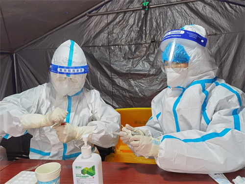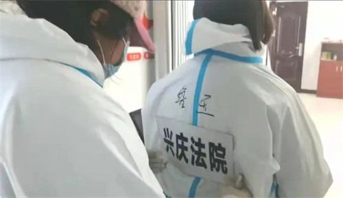 根据疫情防控指挥中心要求,我所在的兴庆区人民法院173名干警下沉街道(乡镇)。脱下“法袍”换上“白衣”,协助社区和医护人员进行全员核酸采样、扫码登记、样本转运、秩序维护……“姑娘,我不会用手机,能不能帮我下载健康码?”我穿着防护服,戴的面罩上全是水汽,赶紧请工作人员帮我擦一下,然后抓紧时间为老人注册信息。晚上我把同事互相在防护服签名的照片发给朋友,朋友笑着说:“这是新时代的精忠报国”。